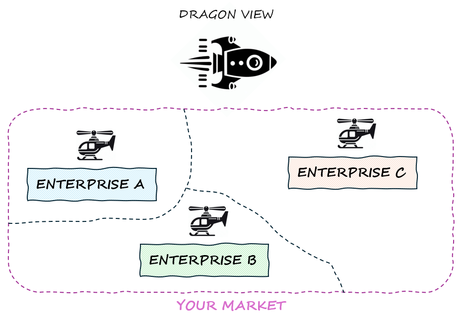This 'Dragon view' helps you make plans that really cover everything, considering both what happens inside your company and what’s going on in the market outside.