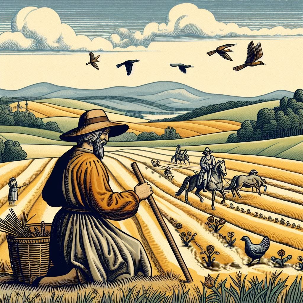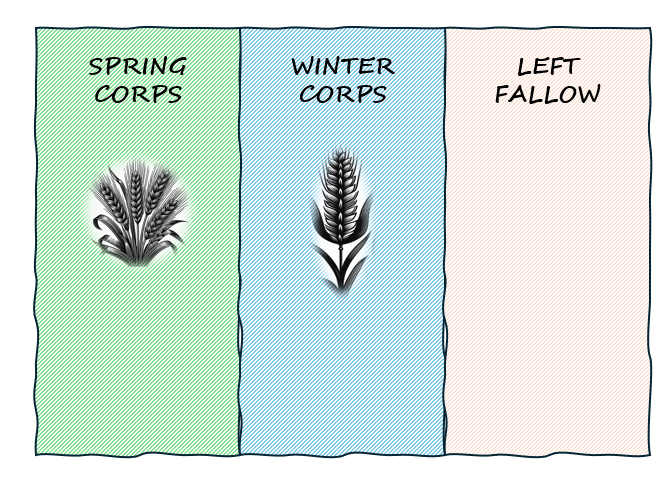 Now, without a shadow of a doubt, they were very hardworking people, but their “planning reality” was not too complicated. They already had a working strategy that ensured the maximization of resources. Their actions were confined to dividing the field into three parts and following a rotational process: sowing barley in one section this year, wheat in the next, and then leaving it fallow.